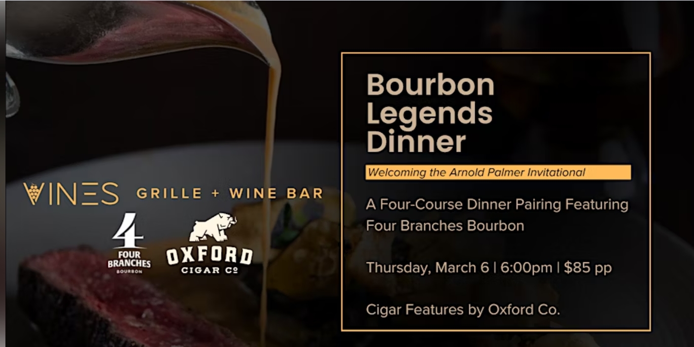 To elevate your Arnold Palmer Invitational experience, Vines Grille & Wine Bar is hosting an exclusive dinner event in conjunction with the tournament. Known for our prime steaks, fresh seafood, and craft cocktails, we’re curating a special dining experience designed for both golf fans and food lovers alike.
